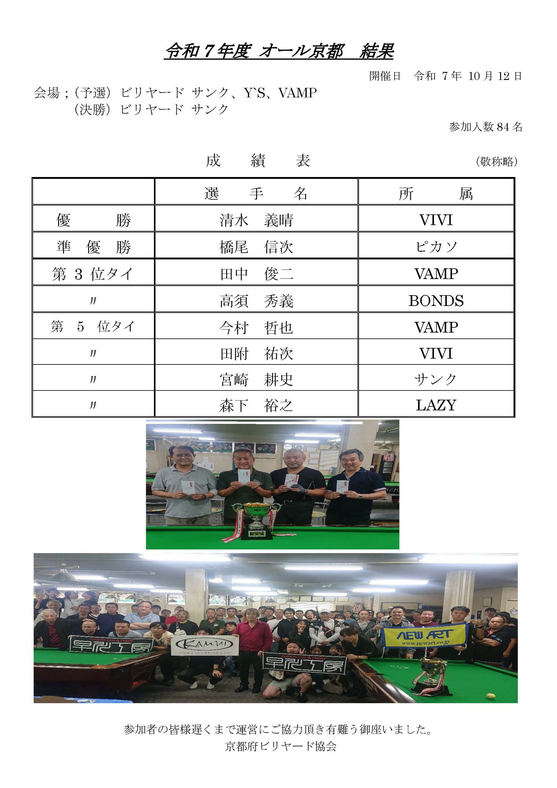 令和7年度オール京都 結果