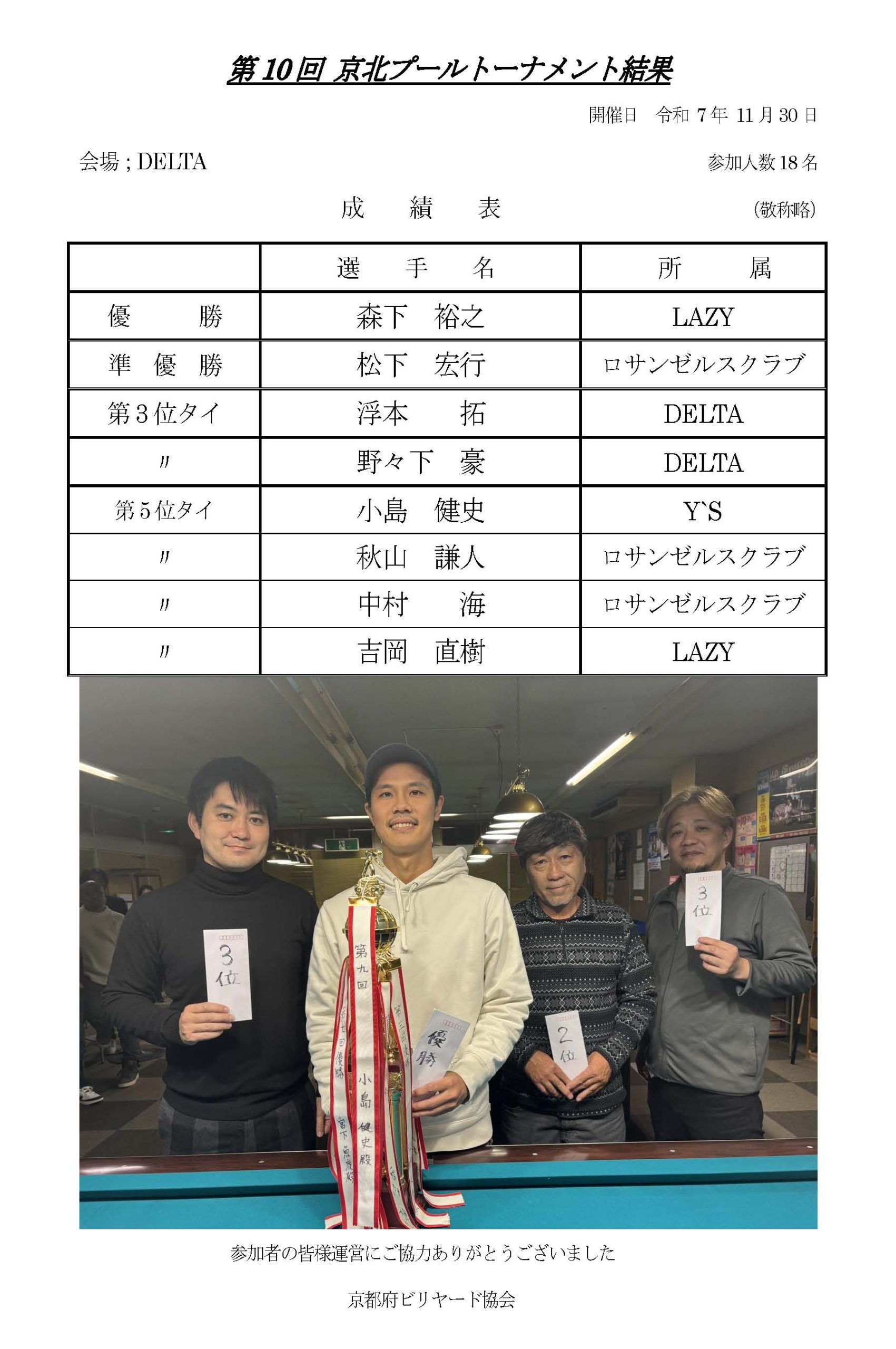 2016 2017 BC級トーナメント Billiard Kyoto Open Pool いざよい サンク伏見店 トーナメント ナインボール ビリヤード ビリヤードY's ポケット 京都オープン 平安十六夜会 平成28年 第21回 第22回
