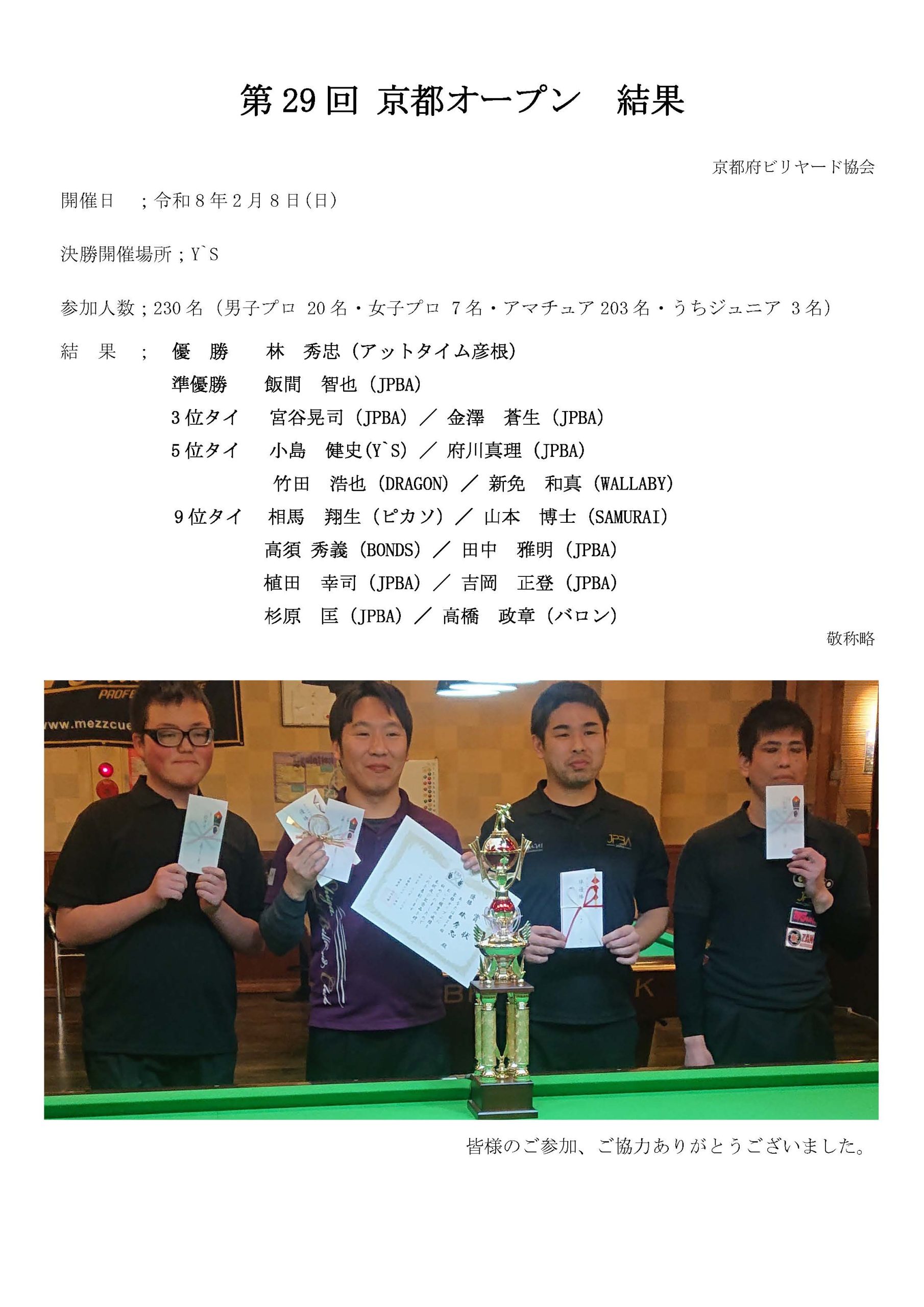 第29回京都オープン 結果