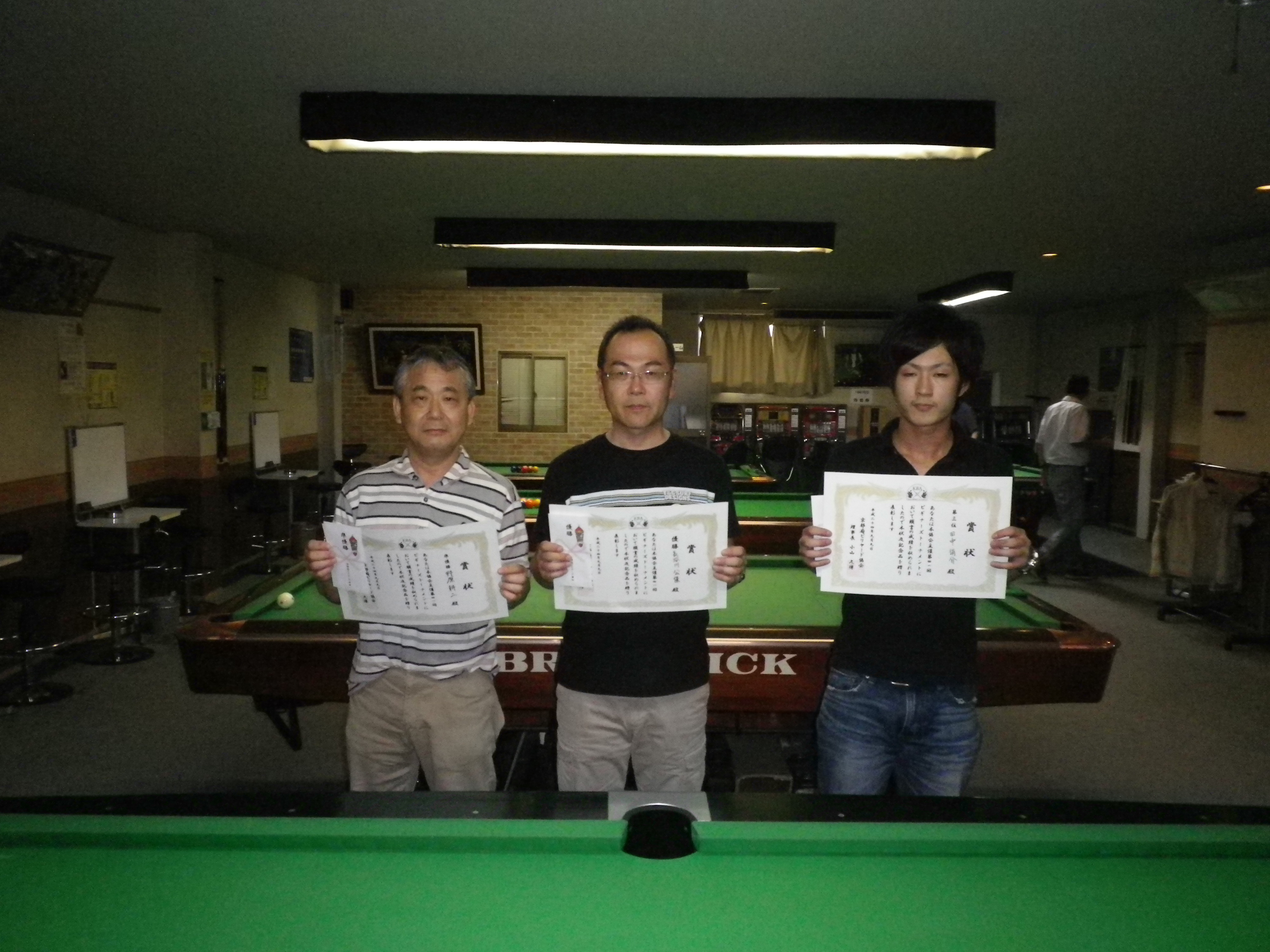 写真説明 左から、準優勝の貝阿弥 大輔選手、優勝の濱本 浩輝選手、3位の力石 勇毅選手です。